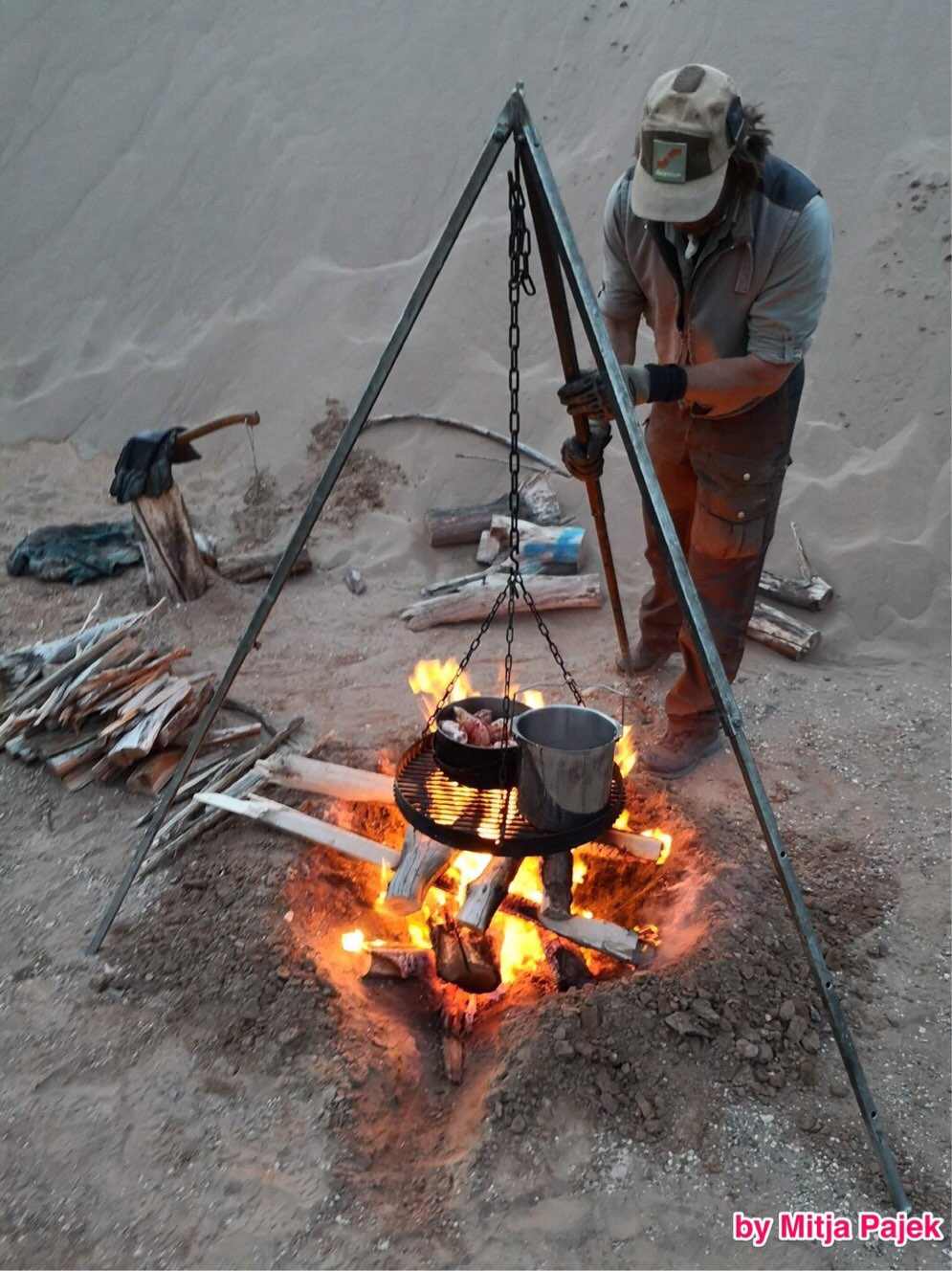 Unsere slowenischen Freunde hatten zwischen ein paar Dünen einen windgeschützten, schönen Platz aufgetan. Und nun konnten wir mit unserer Pluto-Ausstattung punkten: Wir holten statt einem einfach zwei Hühnchen aus dem Tiefkühler und kredenzten auf dem Feuer zwischen den Dünen einen herrlichen Hühnchen-Topf für die ganze Mannschaft.