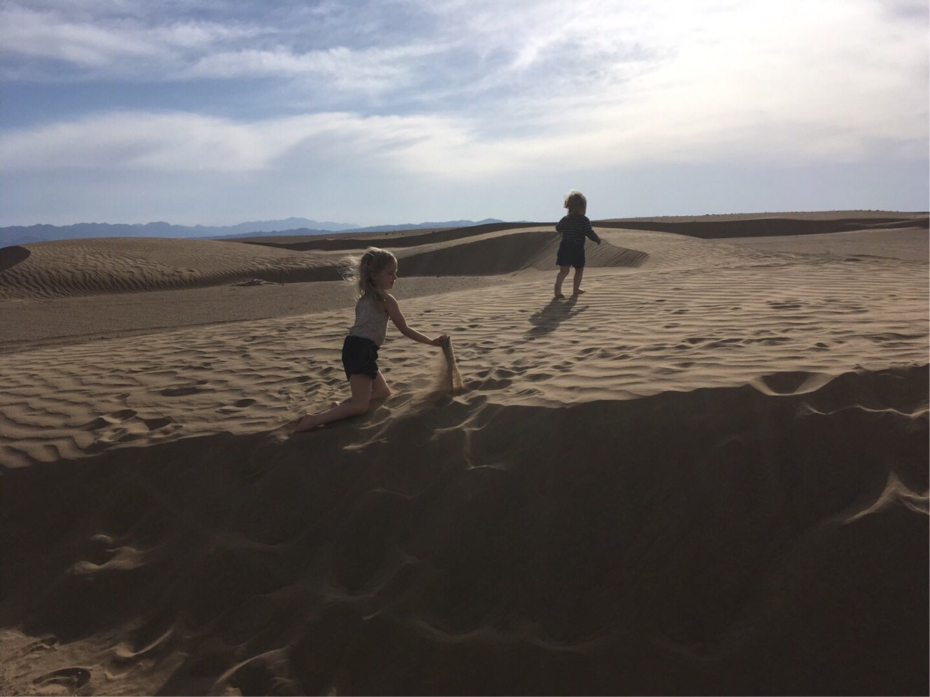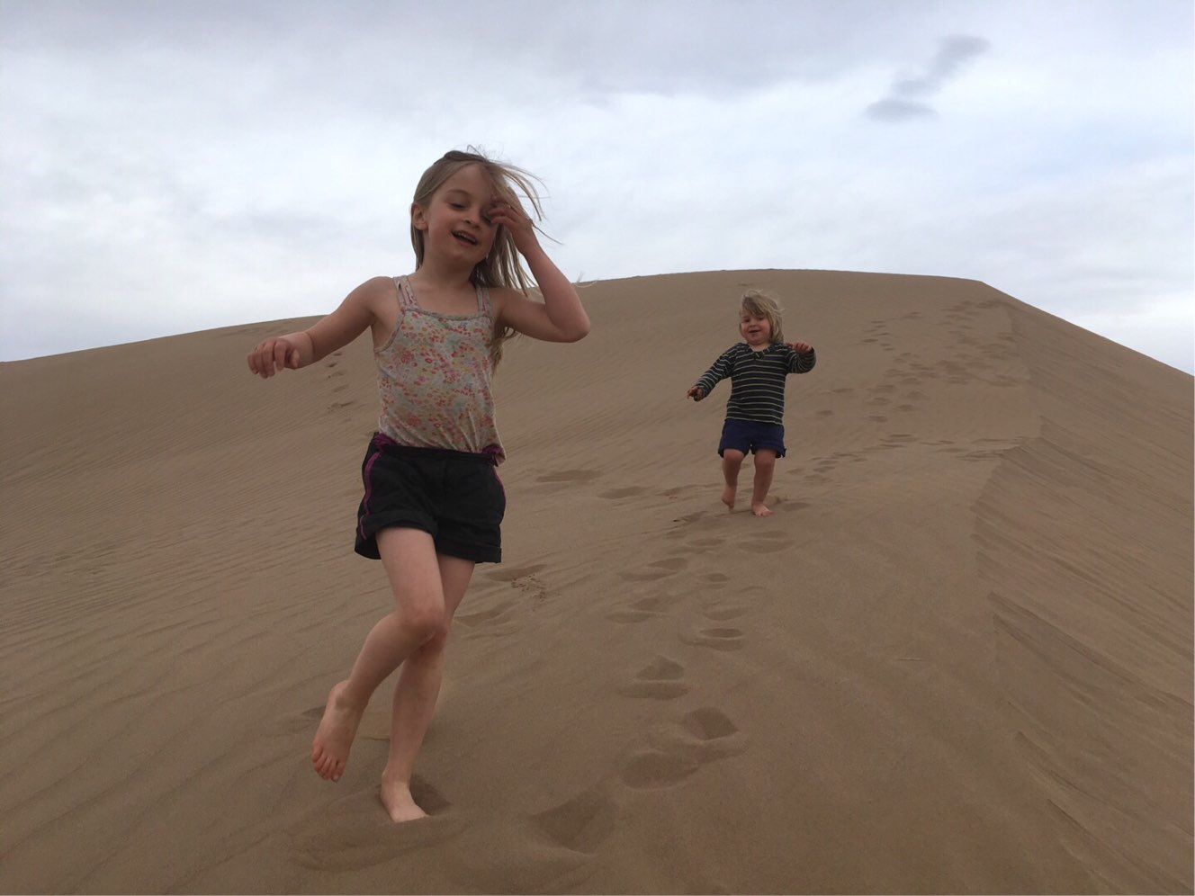 Derweil waren die Kinder überwältigt vom riesigen Sandkasten. Sie rollten durch den weichen Sand und ließen sich hineinplumpsen, rannten die Dünen hoch, rutschten wieder hinunter und jauchzten dabei vor Freude.