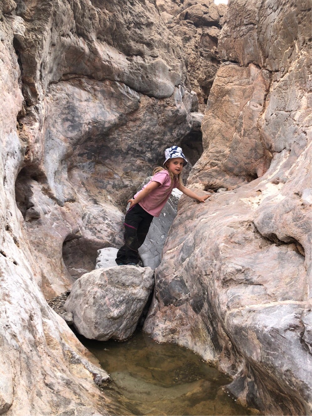 Abgesehen von den Skorpionen war unser Plätzchen am Bergsee ein Traum! Die Berge und Felsen in der direkten Umgebung hätten genügend Touren für mehrere Wochen geboten. Gleich am zweiten Tag kletterten wir die Felswände entlang eines steilen, trockenen Flusslaufs bergan. Insbesondere Josefine ist eine begeisterte Kletterin und konnte ihr Glück kaum fassen.