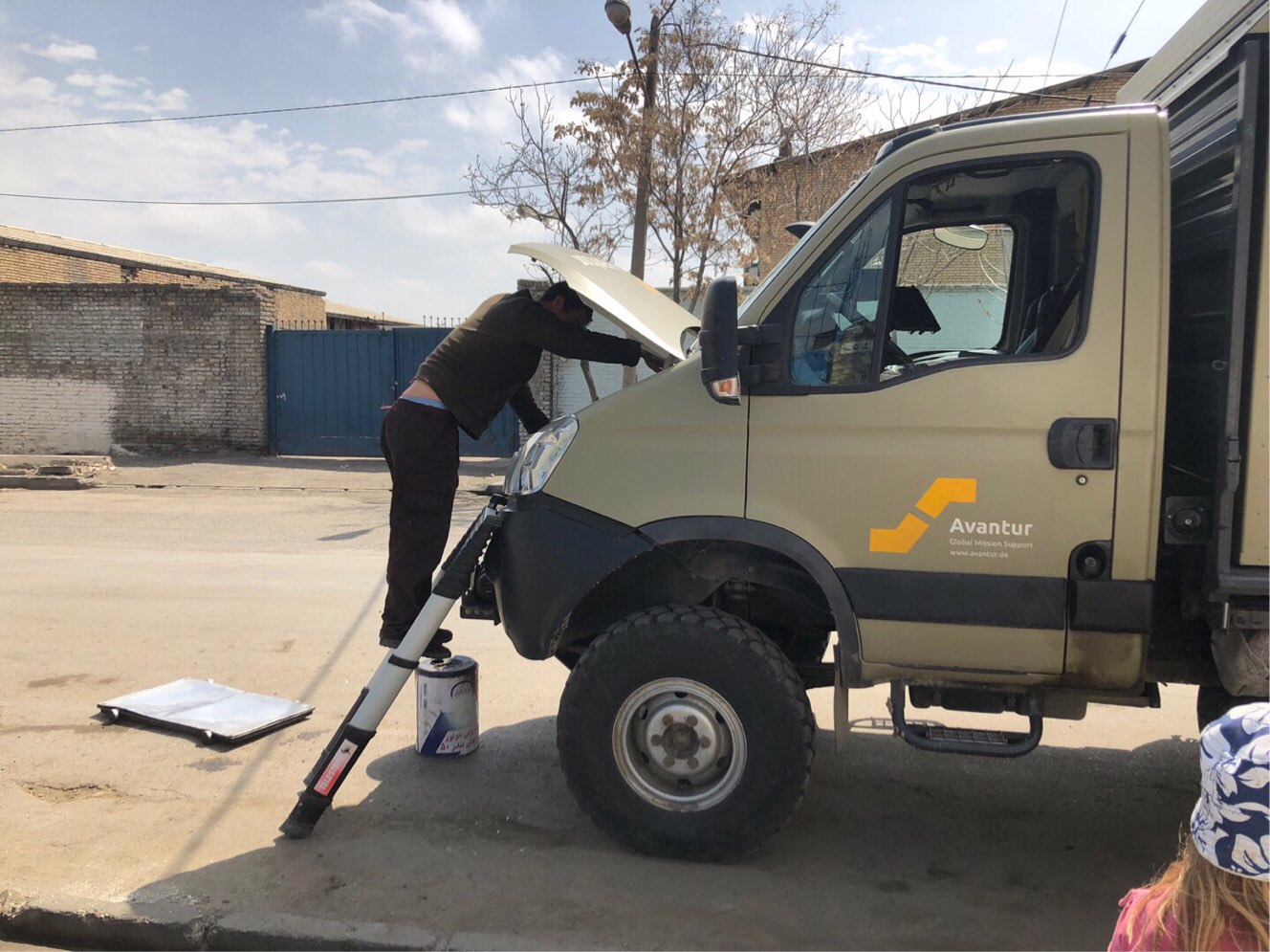 Am nächsten Morgen war an der Iveco-Werkstatt auch nach langem Warten niemand anzutreffen. Dafür baten Mechaniker aus einer benachbarten Werkstatt ihre Hilfe an. Martin hatte einige Ersatz-Filter dabei, die eigentlich nicht das Problem waren, die wir aber trotzdem austauschen ließen.