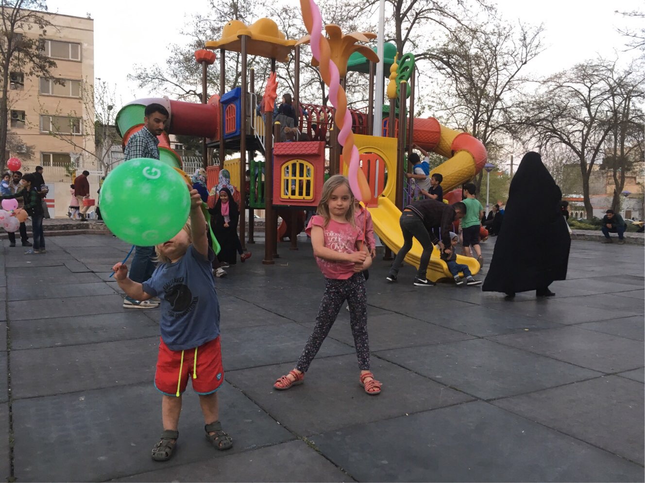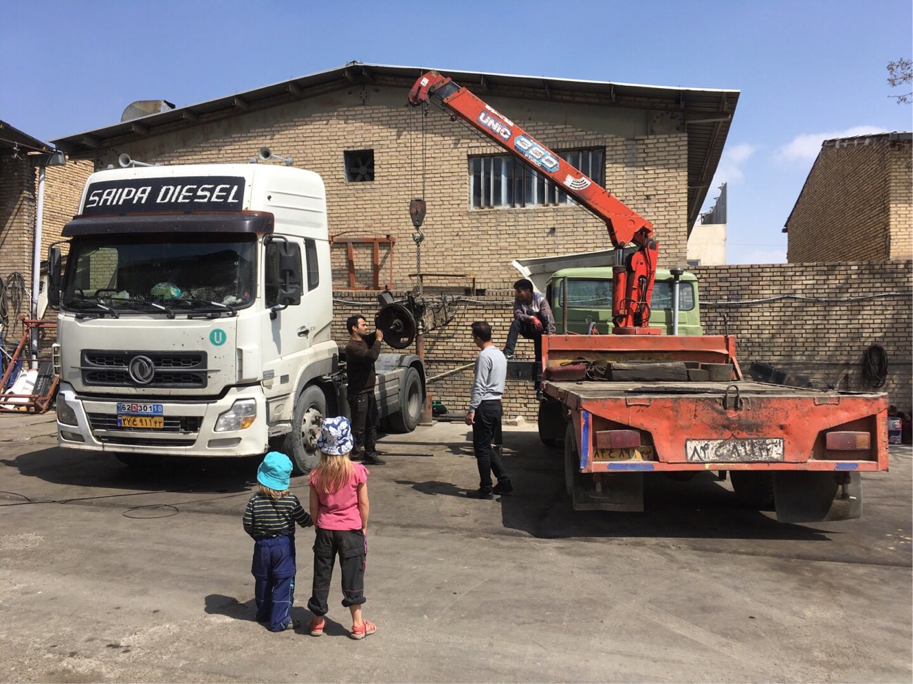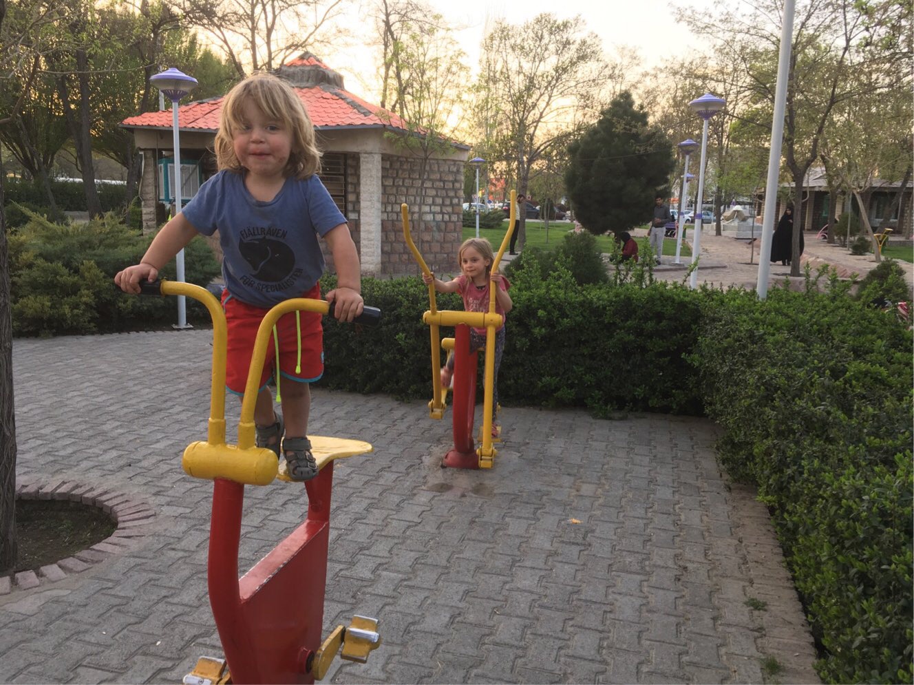 Aber noch einmal zurück zum Iran: Im Anschluss an unsere Abkühlung am und im Fluss fuhr Martin mich mit den Kindern auf einen Spielplatz und ging selbst in die Iveco-Werkstatt. So viel zum Thema gleichberechtigte Aufgabenteilung.