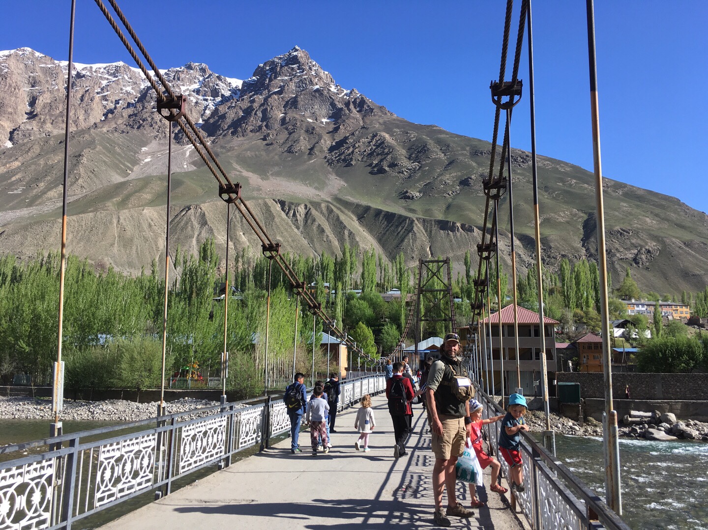 Chorugh war ein sehr lebhaftes Städtchen. Wir streiften über den Basar und Martin erstand eine Flex, die er tatsächlich bereits in Murghab ein paar Tage später brauchte. Wir genossen den Abend im Serena Inn-Hotel etwas außerhalb der Stadt, das malerisch direkt am Ufer des Pandsch liegt. Balthasar freute sich riesig über die pakistanischen Jungs, die dort mit ihm Fußball spielten.