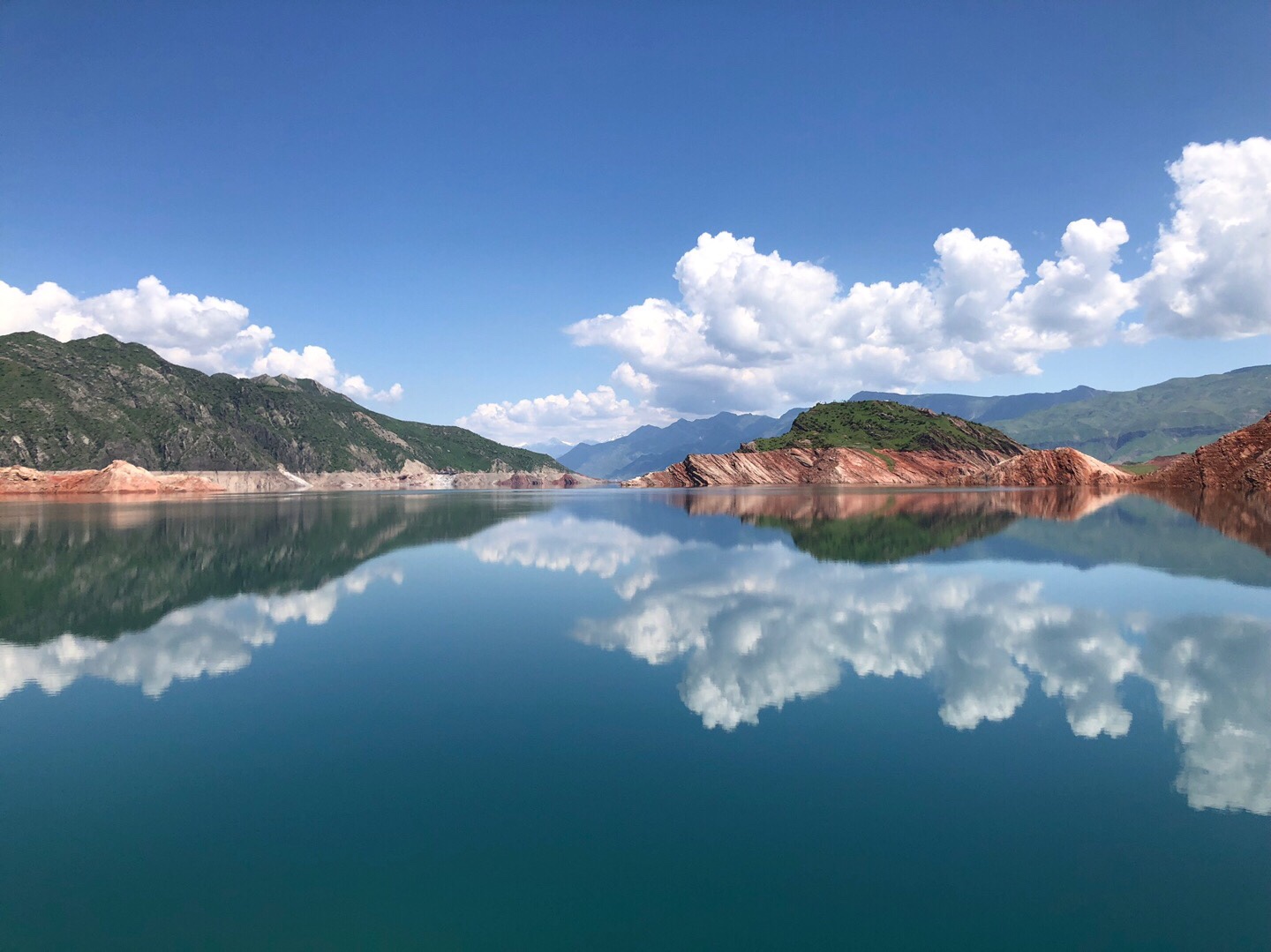 So kamen wir noch einmal am Nurek-Stausee vorbei, der uns bei unserem Ausflug von Duschanbe aus so gut gefallen hatte – türkiser See umsäumt von roten Felsen und grünen Wiesen.