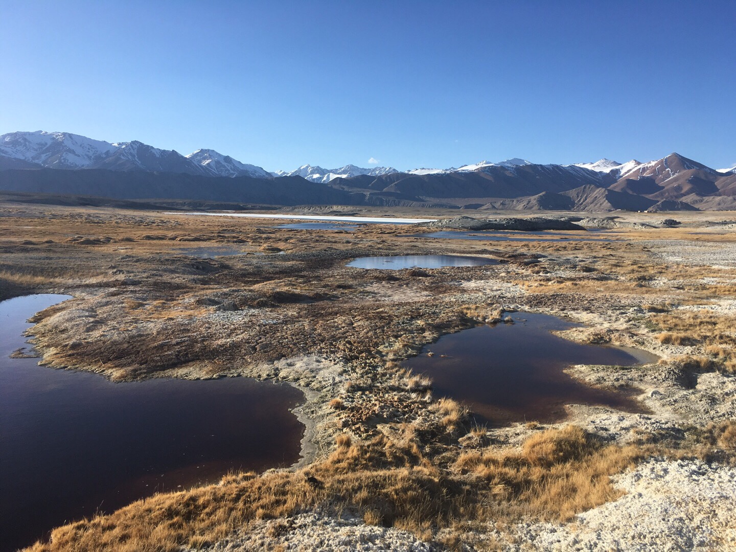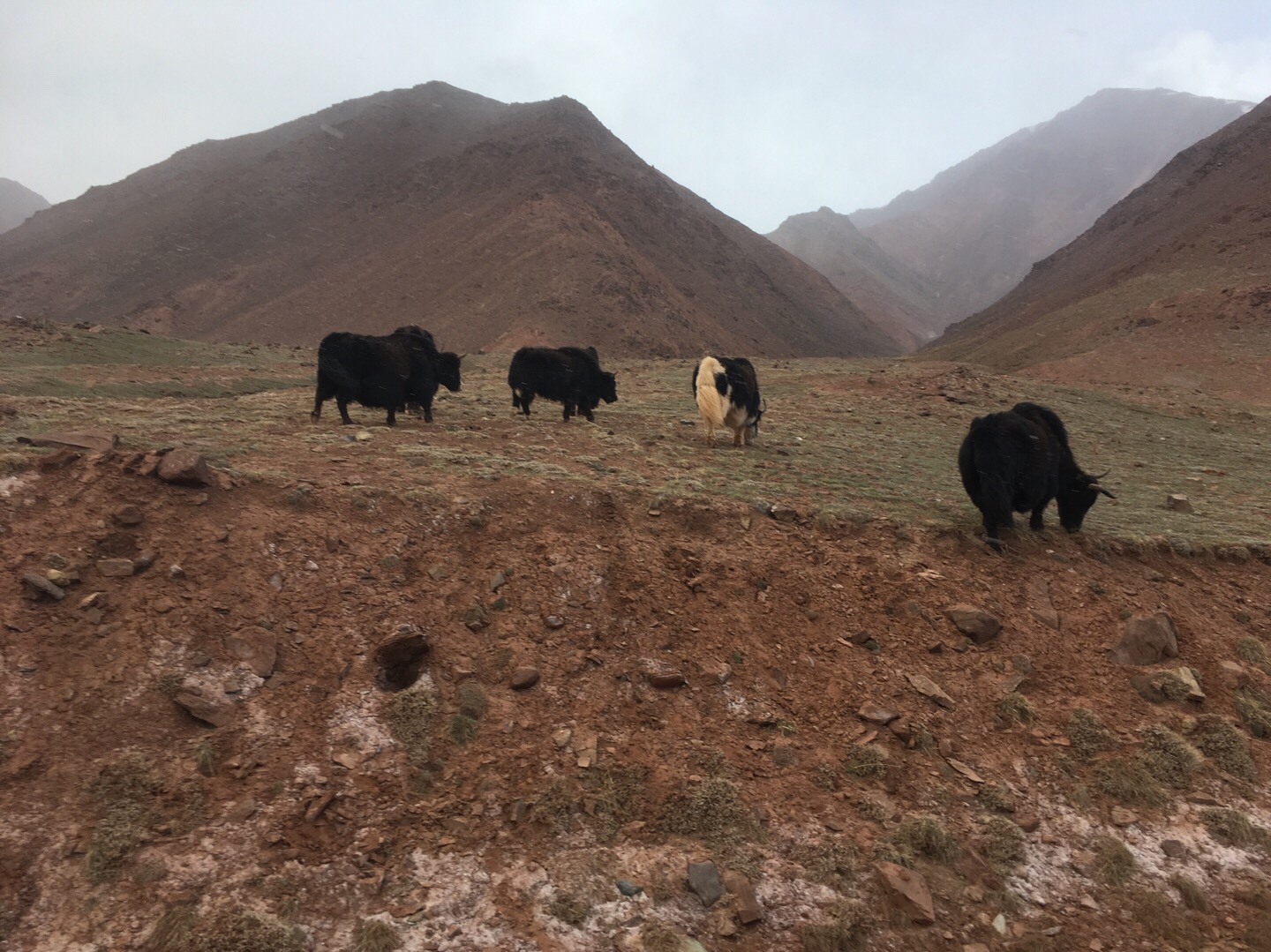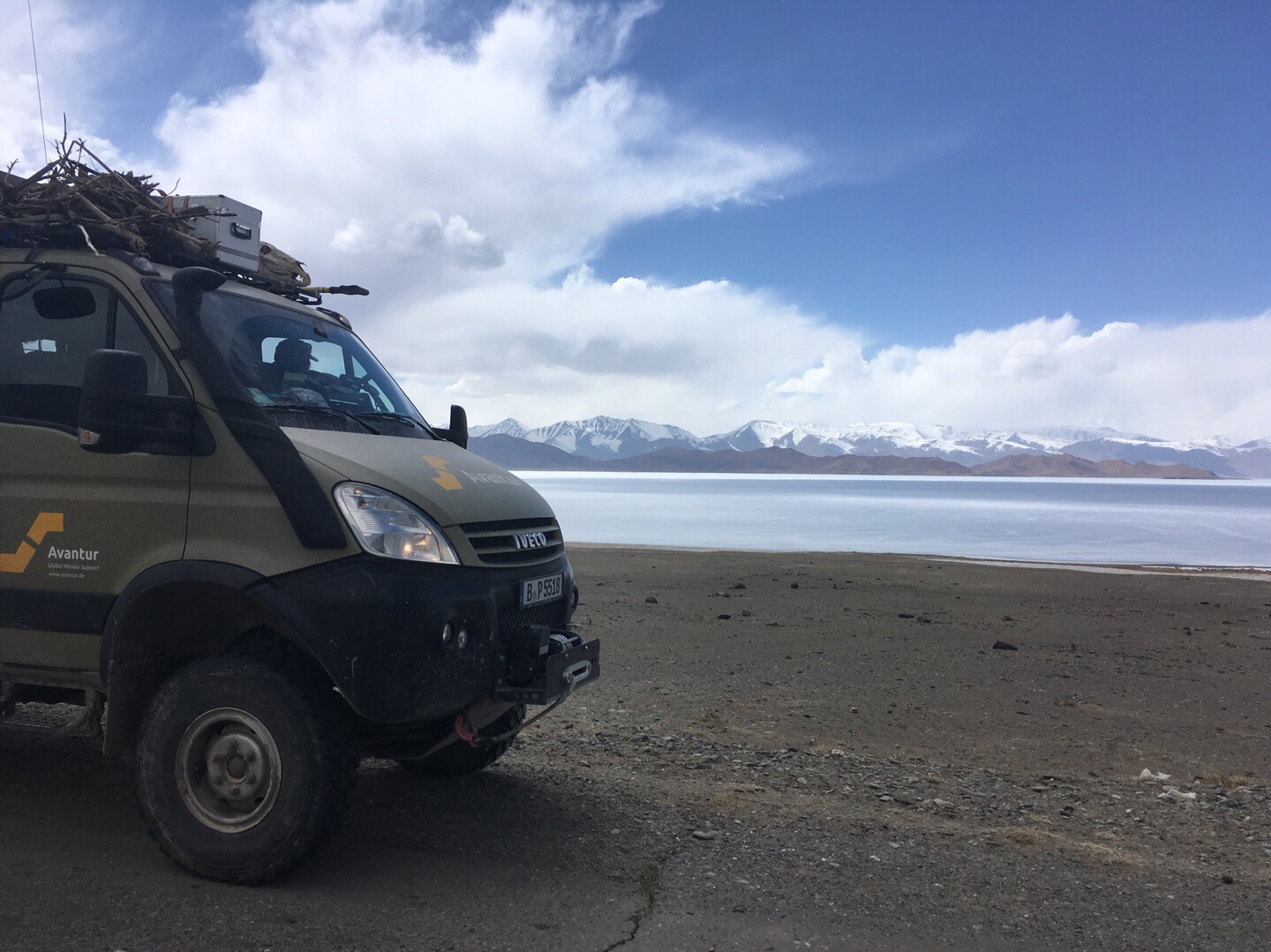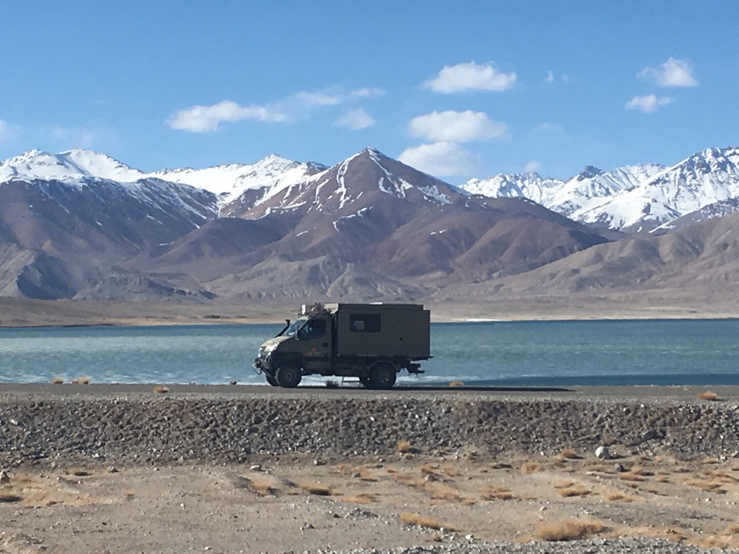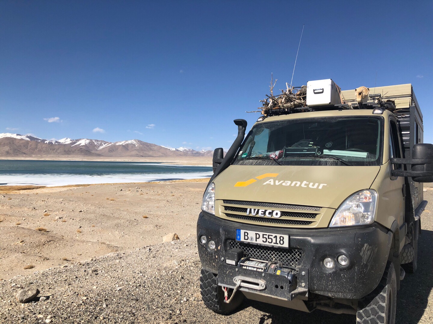 Von nun an fuhren wir parallel zur chinesischen Grenze Richtung Norden. An einem langen Fahrtag passierten wir weitere Yak-Herden und Murmeltiere, erreichten auf dem 4.655 Meter hohen Ak-Baital-Pass den höchsten Punkt unserer Reise und fuhren vorbei am salzigen Karakul-See, der noch teilweise gefroren war.