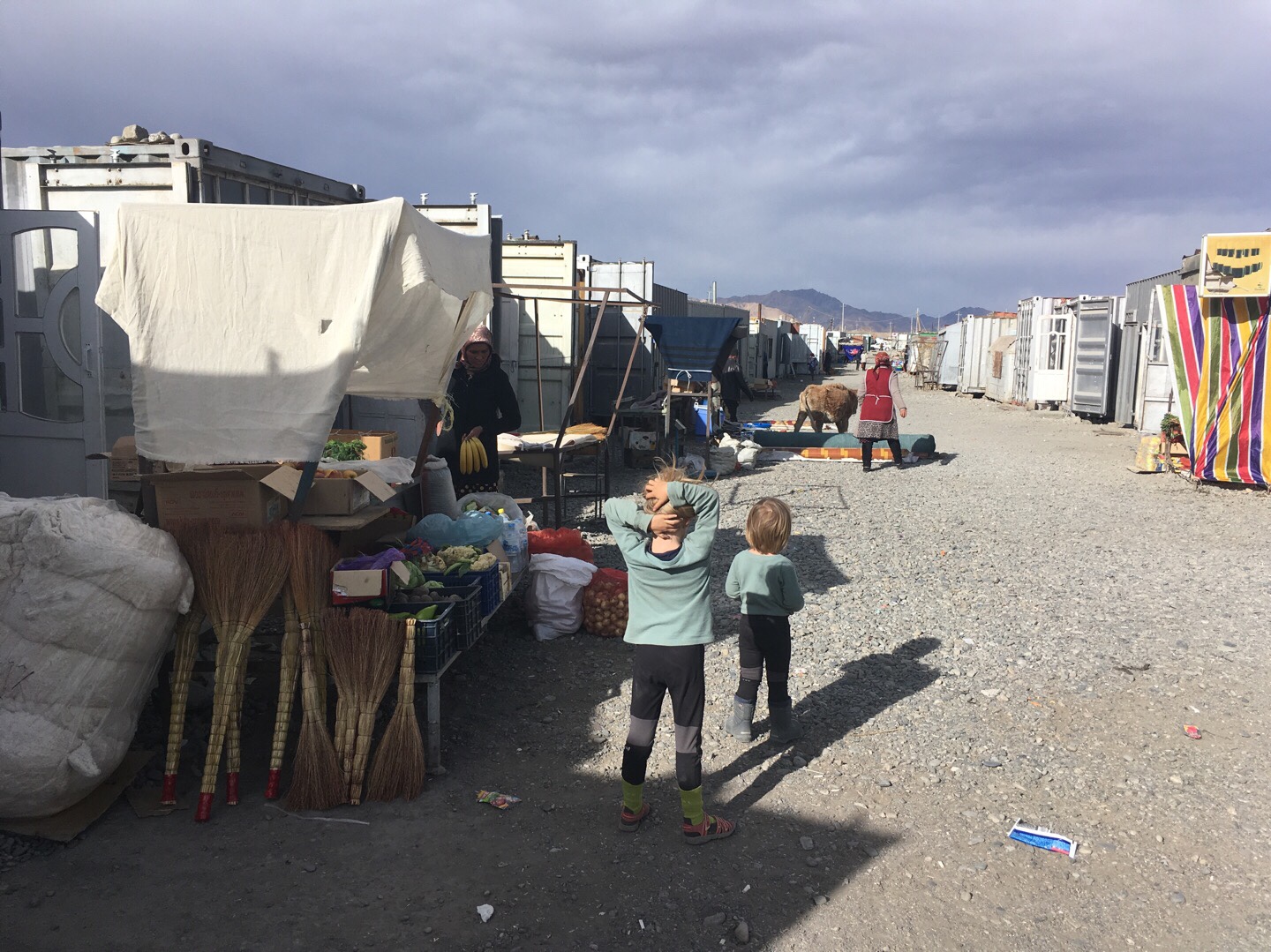 Wir erlebten Murghab als einfaches Berg-Städtchen, durch das ständig ein starker, sandiger Wind zog. Es gab einen Container-Basar, auf dem neben wenigen Einheimischen auch Kühe herumliefen. Die Tankstellen hatten teils wieder gutes russisches Benzin aus Kirgisistan in Kanistern. Beim Tanken entdeckte Martin, dass am Pluto die Aufhängung eines Stoßdämpfers gebrochen war. Mit Rohren der Tankstellen-Wärter und Martins neuer Flex war diese schnell repariert. Martin wurde immer mehr zum Mechaniker. Und das ist auch für den Rest der Mannschaft ein großes Glück!
