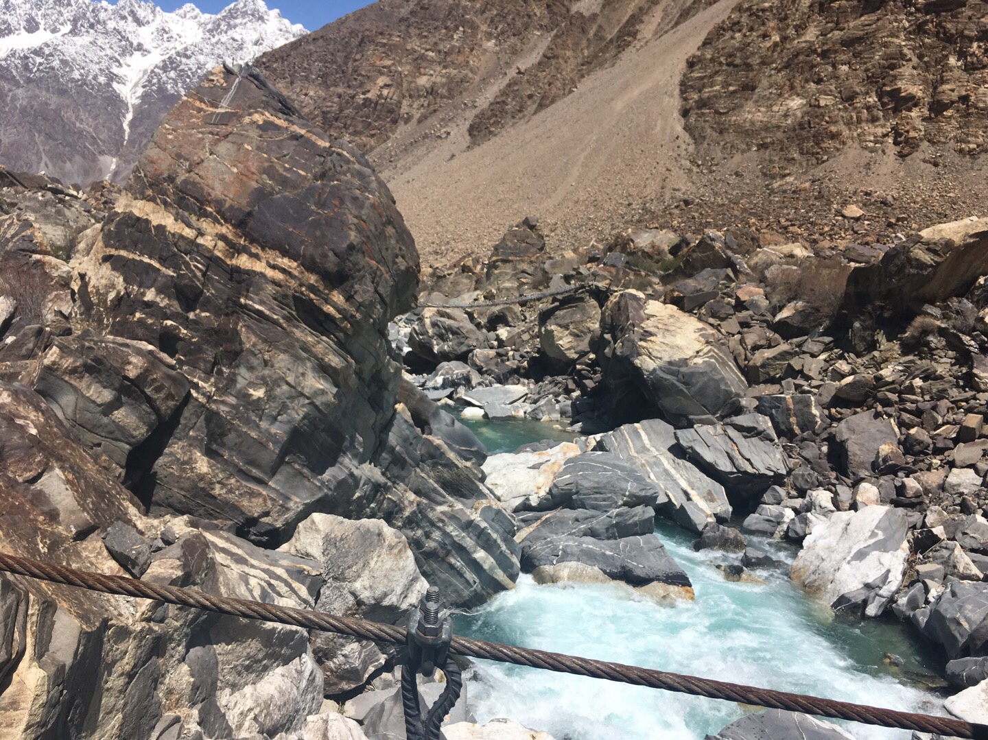 Martin machte am nächsten Morgen noch eine einigermaßen gewagte Flusswanderung mit den Kindern – dann ging es weiter Richtung Chorugh.