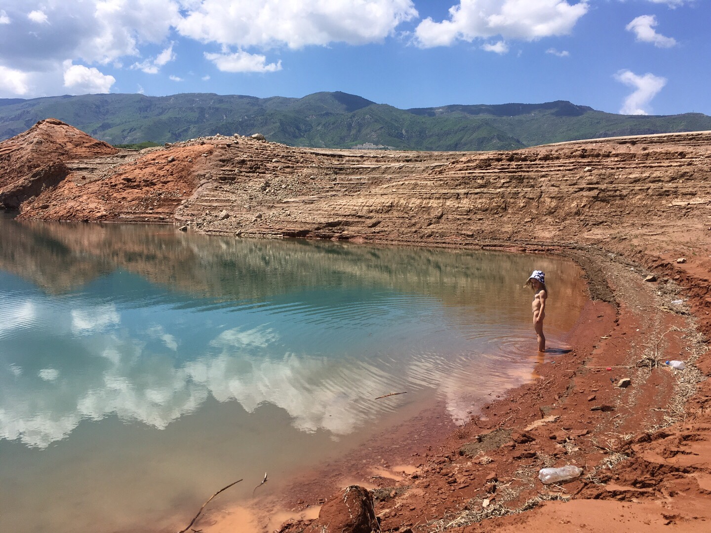 Es war nicht ganz einfach, für das morgendliche Bad an den Stausee zu kommen. Das Ufer und auch der Einstieg in den See waren steil. Dennoch war das Bad im See eine wunderbare Erfrischung. Die Kinder genossen am meisten den Matsch am Ufer.